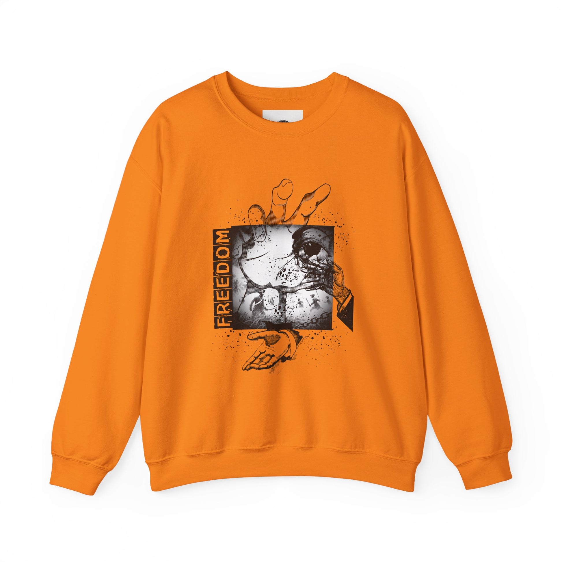 This FREEDOM design sweatshirt exudes a sense of empowerment and individuality, making it perfect for those who value personal expression. Ideal for adults looking for a cozy and stylish option for the colder months. Suitable for individuals who celebrate independence, self-expression, and freedom.